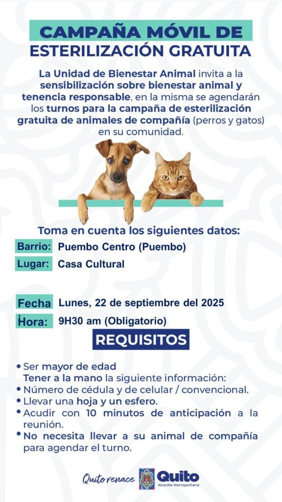 El Gobierno Parroquial de Puembo se complace en anunciar, la campaña de esterilización gratuita, por…